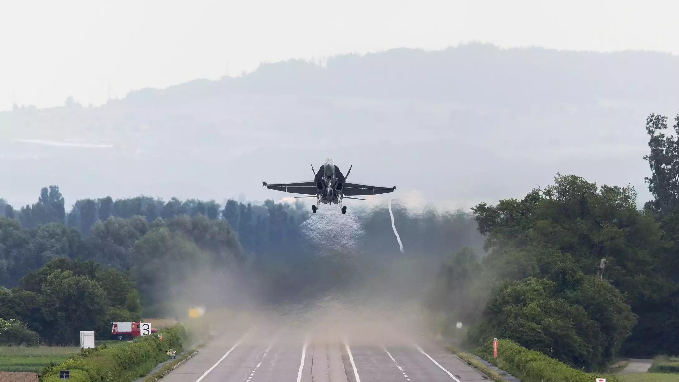Après 33 ans d’absence, des avions de combat suisses se sont entrainés à opérer depuis une portion d’autoroute suisse. Suite aux changements sécuritaires en Europe, les Forces armées suisses cherchent à se ré-entrainer à ce type d’opérations. La manœuvre est complexe et demande la mobilisation de nombreux moyens mais permet de sauvegarder une capacité aérienne en cas de destruction des aéroports. C’était d’ailleurs la première fois que les Hornet des Forces aériennes suisses roulaient sur une autoroute suisse.