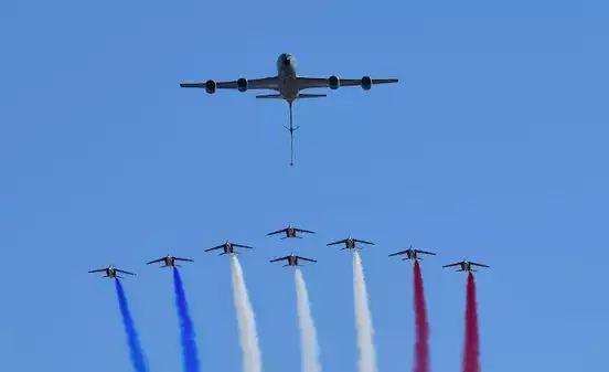 Face au risque du rituel, le défilé aérien continue à se renouveler, avec un adieu appuyé cette année à trois aéronefs qui quittent déjà le service, ou le feront dans les mois qui viennent (sans garantie donc d'être
