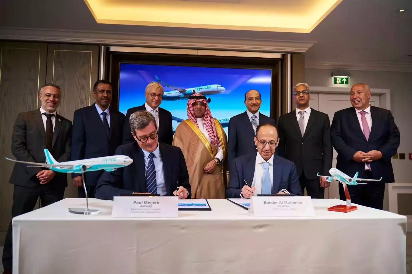 Au quatrième jour du Farnborough Airshow, la compagnie aérienne low cost saoudienne Flynas signe un protocole d'accord avec Airbus et portant sur 75 appareils de la famille A320neo supplémentaires assortis de 15 A330-900. Ces derniers seront aménagés dans une configuration bi-classe