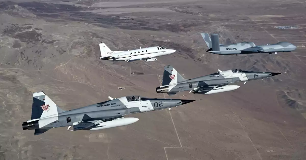 Le 17 novembre 2022 , General Atomics Aeronautical Systems (GA-ASI) a jumelé un système d'aéronef sans pilote (UAS) MQ-20 Avenger® appartenant à la société avec un Sabreliner, exploité par Lockheed Martin et agissant comme un chasseur de substitution, et deux F-5 Advanced Tigers (AT) de Tactical Air Support configurés avec des capteurs TacIRST internes, pour effectuer une détection infrarouge multiplateforme. Au cours de cet événement, tous les aéronefs ont effectué des manœuvres coordonnées pour détecter des cibles aériennes pertinentes dans le spectre infrarouge. Le MQ-20 et le Sabreliner étaient connectés numériquement par un réseau maillé de technologie de ciblage tactique (TTNT) pour partager les observations de détection. En plus des aéronefs de vol réel, cinq jumeaux numériques du MQ-20 ont été intégrés pour piloter de manière autonome une mission de combat collaborative en direct, virtuelle et constructive (LVC).