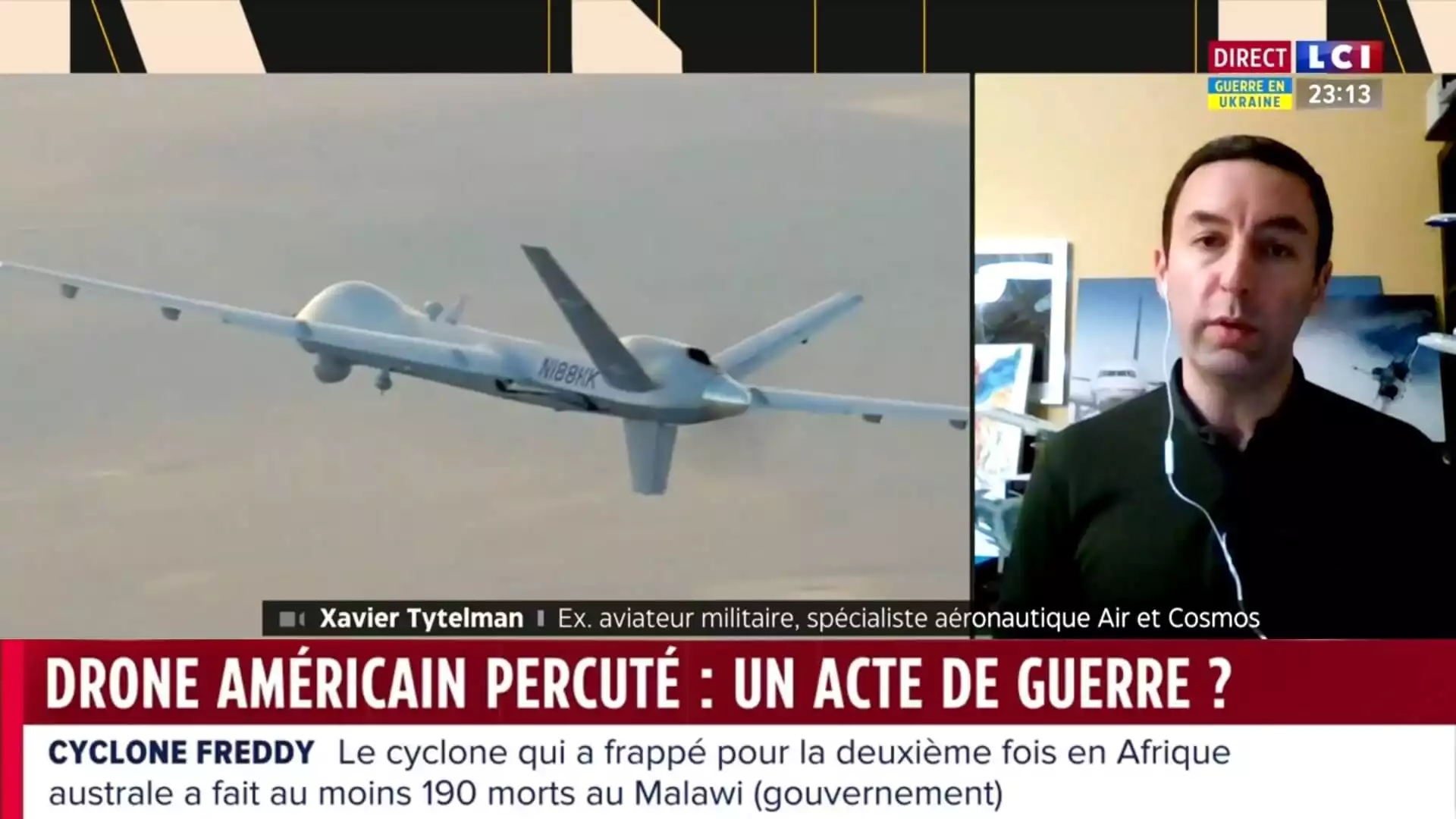 Tous les jours, des avions de surveillance survolent la Mer Noire et la frontière est de l'Europe afin d'y mener des missions de surveillance et de protection. Après plusieurs incidents graves, la Russie passe un cap et vient d'abattre un drone américain dans une collision. Point également sur la volonté russe d'accroître la production de missiles de croisières et sur les prochaines livraisons de Mig-29 à l'Ukraine.