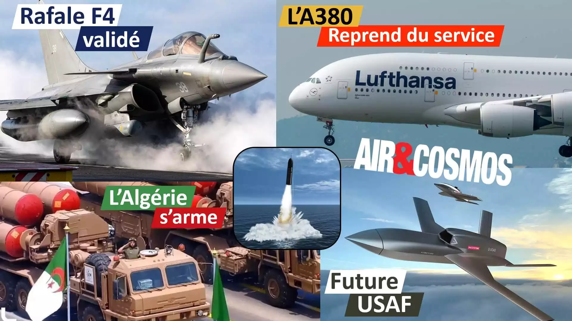 Dans la revue de presse trimestrielle : le Rafale F4 est validé, l'A380 reprend du service, l'US Air Force dévoile son futur, l'Algérie double son budget militaire, les projets munitions rôdeuses se multiplient, échecs dans le spatial, test réussi pour le M51...