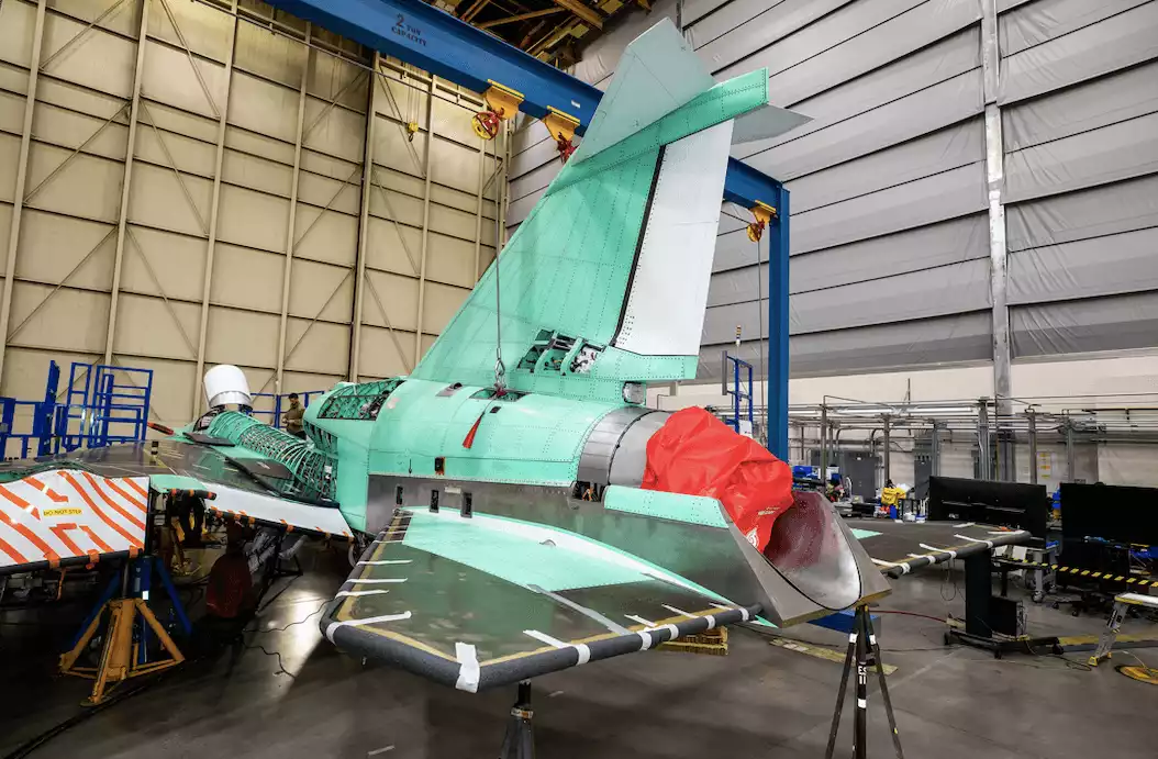 Le X-59 continue d'être assemblé au sein de la division Skunk Works de l'usine de Lockheed Martin, située à Palmdale en Californie. L'appareil vient de voir son empennage monté, ce qui va permettre entre autres de terminer l'installation du câblage de l'avion.