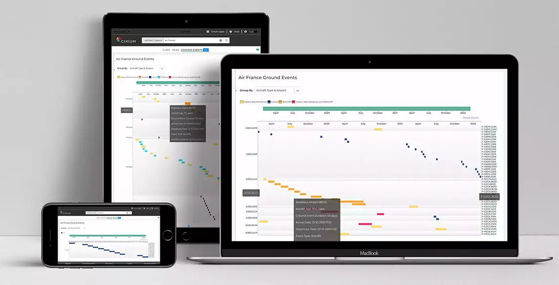 Cirium lance la première fonctionnalité de suivi de la maintenance des avions par satellite de l'industrie aéronautique intégrée à son module Ascend Profiles. La nouvelle fonctionnalité Ground Events permet aux fabricants d'avions et de moteurs, aux fournisseurs de services de