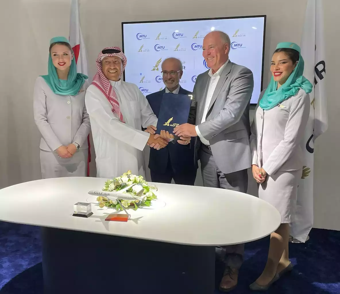 Gulf Air, la compagnie nationale du Royaume de Bahreïn, et MTU Maintenance ont signé aujourd'hui un contrat exclusif pour la maintenance, la réparation et la révision des moteurs V2500-A5. L'accord, d'une durée de quatre ans, porte sur des services MRO complets, le support LRU, la surveillance des tendances des moteurs et les services sur site, ainsi que sur le support des moteurs de rechange pour les Airbus A321ceo équipés de V2500 de Gulf Air.
