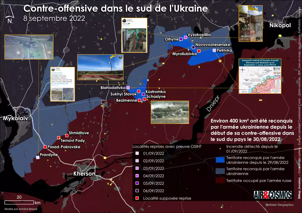 L'Ukraine proclame depuis plusieurs mois sa volonté de reprendre le sud du pays et notamment la région de Kherson, aboutissant à la contre offensive initiée le 29 août. Si les avancées des premiers jours sont désormais connues, les remontées d'informations restent décalées de plusieurs jours et l'avancée ukrainienne serait plus importante que celle qui peut être prouvée.