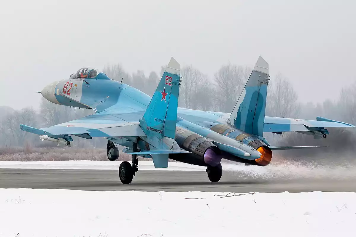 La durée de la vidéo est très courte et ne permet pas d'identifier formellement l'appareil en question, bien qu'il s'agisse clairement d'un train d'atterrissage d'un avion Su-27, Su-30, Su-33 ou Su-35.