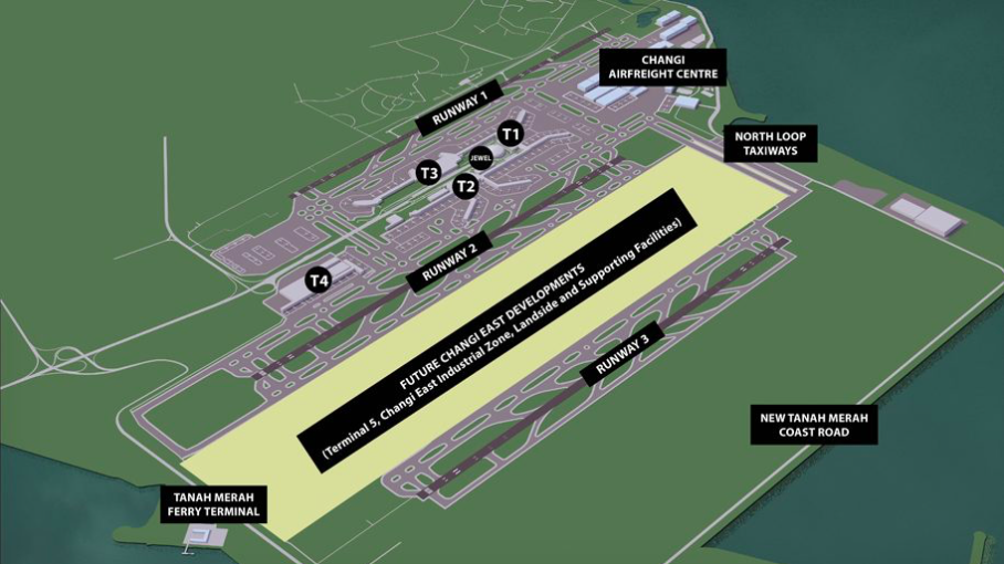 La partie clé du chantier de Changi East sera la construction du terminal 5 de l'aéroport singapourien de Changi, avec une troisième piste et une capacité d'accueil de 50 millions de passagers supplémentaires.